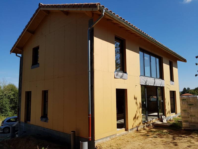Construction d'une maison ossature bois isolée en paille à Marcilly d'Azergues